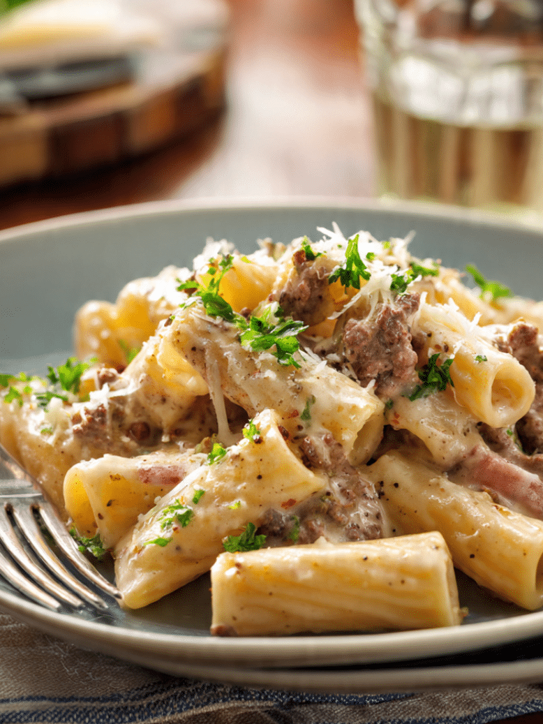 • What it is: A creamy beef pasta inspired by classic carbonara