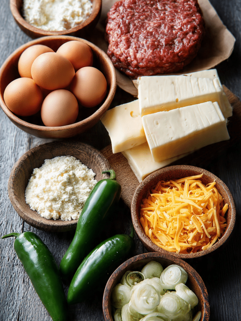 The best keto jalapeno poppers burger uses simple, high-fat, low-carb ingredients like ground beef, jalapeños, cream cheese, cheddar, and bacon. These ingredients create a rich, spicy, and satisfying burger that fits perfectly into a keto lifestyle while staying easy to cook at home.