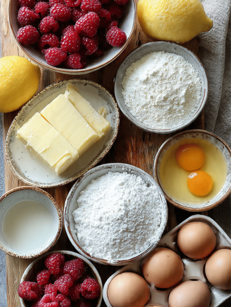 Essential ingredients for lemon raspberry cottage cheese bake recipe easy