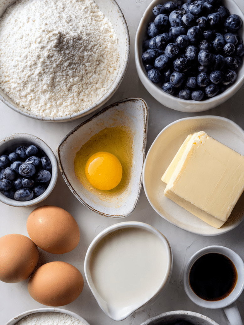 Fresh blueberries work best, but frozen ones also hold up well. According to Wikipedia, blueberries are widely used in baked goods due to their natural sweetness and moisture content, which helps create a tender texture in recipes like this Blueberry.