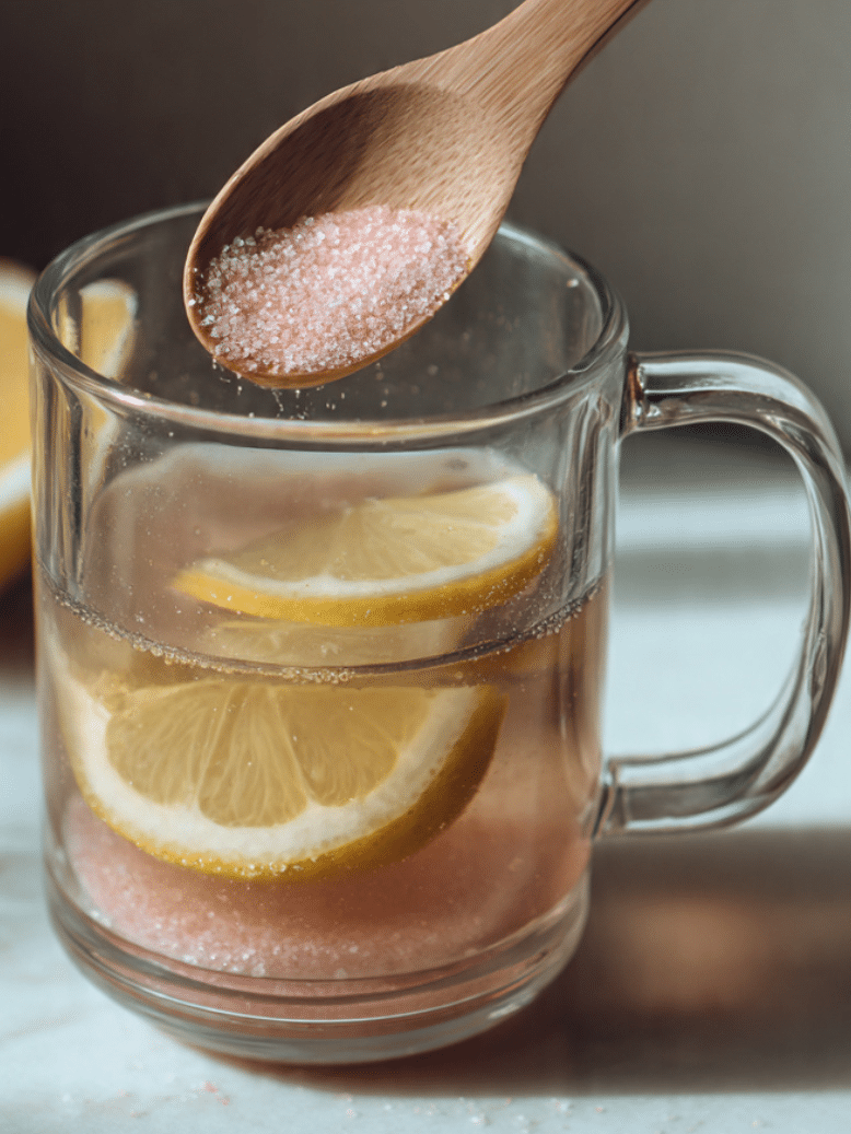 The idea sounds almost too simple. Mix warm water with a small pinch of mineral-rich salt, add lemon for brightness, and drink it slowly in the morning.